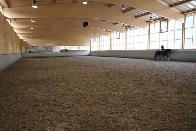 Lämpöeristetyssä, valoisassa 22 x 42 maneesissa pääset harjoittelemaan mukavasti hyvällä Geopat -hiekka -pohjalla. Maneesin koko toinen pääty peiliä. Pihassa valaistu, Geopat-hiekkapohjainen ulkokenttä 30 x 65 metriä. |