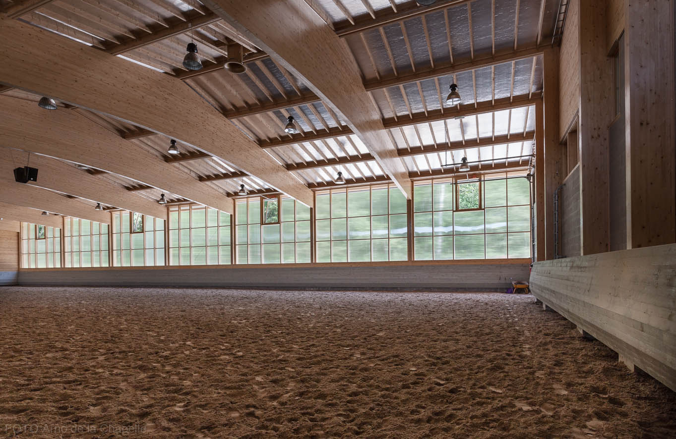 | Riittävästi säilytystiloja joka hevoselle, sekä rehuhuone. Solarium, pesupaikka sekä viihtyisä kahvio, josta avautuu loistava näkymä suoraan maneesiin! |